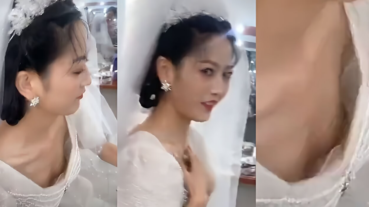 乳首チラ ウェディングドレスを着たモデルが乳首チラを晒してしまう放送事故はこちらw